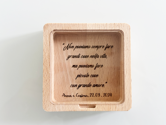 Scopri la nostra collezione di oggetti in legno completamente personalizzabili, realizzati con precisione grazie alla tecnologia CNC. Perfetti come bomboniere uniche, ogni pezzo è lavorato con cura per creare forme eleganti e dettagli raffinati. Oggetti versatili, realizzati in legno di alta qualità, pensati per dare un tocco distintivo a ogni occasione speciale.